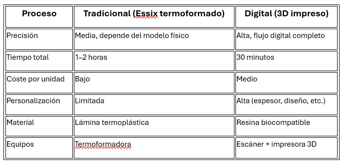 Cuando se trata de ofrecer comodidad, rapidez y precisión, no todas las técnicas juegan en la misma liga. El método tradicional con lÔminas termoformadas ha sido la norma durante años, pero la impresión 3D con la resina Retainer de SprintRay abre una nueva puerta: retenedores personalizados en minutos, con ajuste perfecto y mÔxima estética.