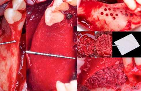 Collage de la situación inicial y la regeneración realizada usando MatrixFlex, MatrixOss e injerto autógeno.