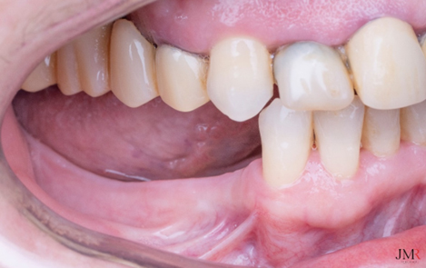 Situación clínica inicial, donde se aprecia sobre todo, el componente horizontal de la atrofia y un espacio protésico reducido.